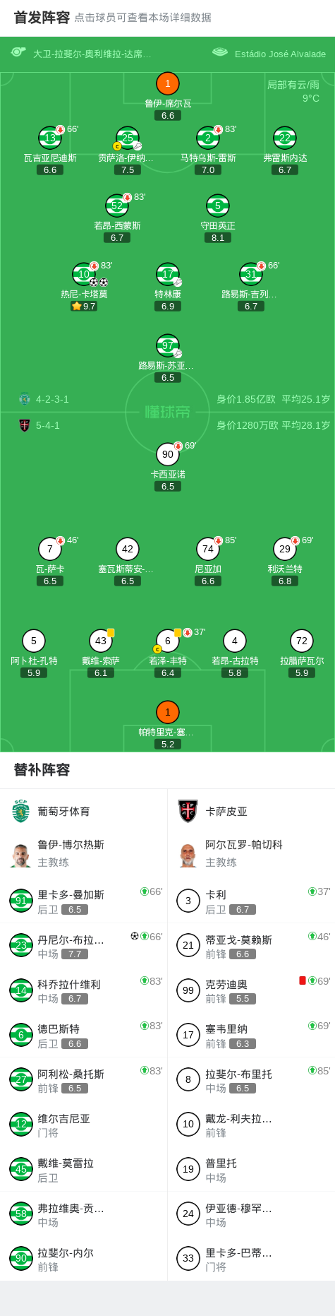 北京时间1月17日葡萄牙足球超级联赛 联赛 第18轮,葡萄牙体育主场对阵卡萨皮亚。葡萄牙体育热尼-卡塔莫梅开二度,丹尼尔-布拉干萨破门。最终比分葡萄牙体育 3-0 卡萨皮亚。